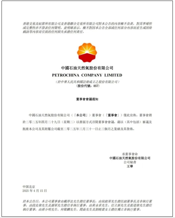 华夏能源网&华夏油气(公众号hxyq3060)获悉,近日,中国石油天然气股份有限公司发布董事会会议通知,其中包含最新董事会成员名单。