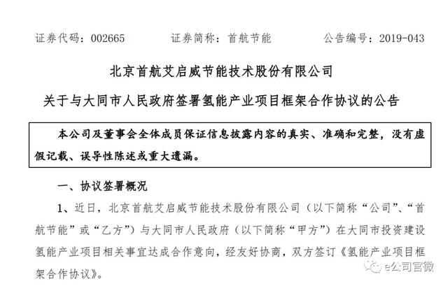 5月13日晚间首航节能(002665)发布公告称,公司近日与大同市人民政府签订《氢能产业项目框架合作协议》(下称《协议》),拟积极参与大同市的氢都建设。