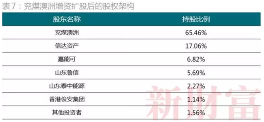 高手之间不但有竞争,还有合作:兖煤虽然拿下了C&A,但资金的来源还是问题。这时,昔日收购的竞价对手,此时摇身一变成为合作伙伴:经过一系列的资本运作,兖煤澳洲的持股情况更加多元,引入了战略投资者,股本得到极大的扩充,从原来的9.94亿股迅猛增加到近440亿股。细节限于篇幅就不展开了,总而言之,经此一役,兖煤澳洲实力膨胀了N倍!