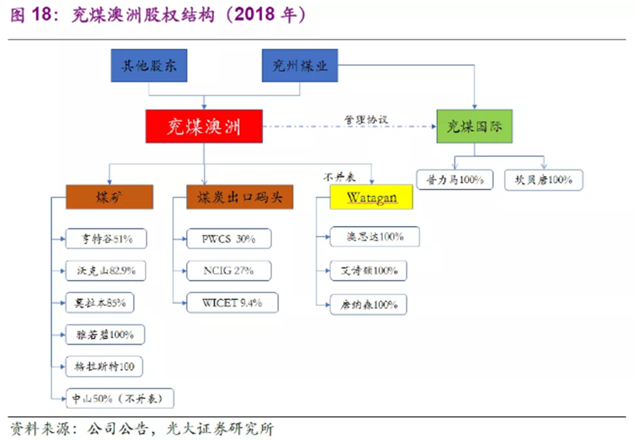 经过这一收购,兖煤澳洲拥有9 座产矿井,其中莫拉本和艾诗顿远期有明确增产可能。截至2018 年底,兖煤澳洲的经营主体以及股权结构如下图所示。同时,从2017年底开始,兖煤澳洲也终于实现了扭亏为盈,2020年上半年利润6.05亿澳元,“拖油瓶”终于变成了“摇钱树”!