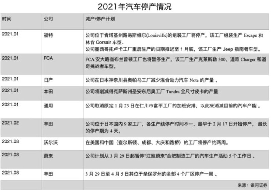 其实早在蔚来停工之前,就已经有多家车企表达过芯片“断粮”的情况,并且还公布了相关的停工计划。