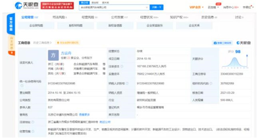 天眼查显示,哪吒汽车是浙江合众新能源汽车有限公司(简称合众新能源)旗下的汽车品牌。合众新能源成立于2014年10月,是一家智能电动汽车制造商,主要从事新能源汽车整车及零部件的设计开发、生产、销售及相关的咨询服务。