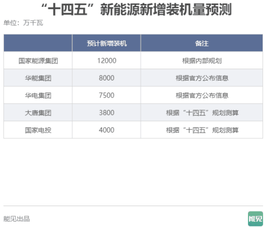 继往开来,站在“十四五”开局第一年,“五大”陆续以不同形式透露了未来五年新能源装机规划。其中,国家能源集团抛出12000万千瓦的宏大计划,让我们看到这家传统能源央企尝试大象起舞的雄心壮志。