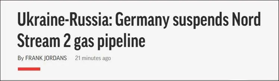 2月22日,德国总理朔尔茨宣布,暂停德俄天然气项目“北溪2号”的评审程序;与此同时,德国经济部长哈贝克要求隶属该部的联邦网络管理局,撤回了一份在新一届政府上任之前做出的认证。