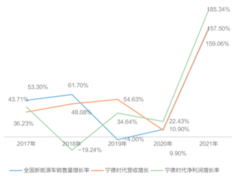 正如前文所述,单看宁德时代2021年的营收和净利润,无论是绝对值还是增长率都表现极好。从最近两年的数据来看,宁德时代的利润增长与中国电动汽车销量的增长保持一致。2019年,宁德时代实现了国内动力电池市场占有率突破50%的骄人成绩,也在国内新能源车市场增长乏力的情况下实现了利润的大幅增长。