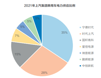 宁德时代也深谙其道,因此与汽车企业合资建设电池产业链,逐渐成为宁德时代的重要战略方向。宁德时代与上汽集团合资成立了上汽时代与时代上汽两家合资公司,主要从事动力电池模块和系统开发、生产销售、电芯生产等。2019年,上汽大约有接近四分之三的电池来自于宁德时代。但到了2021年,上汽集团的动力电池供应已经开始全面多元化。