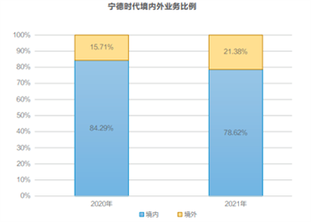 国际市场是宁德时代的更好选择。宁德时代的境外业务毛利率要好于国内。财报显示,宁德时代2021年来自境外的收入同比增长252.47%达278.72亿元,营收占比提升至21.38%,境外毛利率达30.48%。特斯拉、现代、福特、戴姆勒等海外车企均为宁德时代客户。