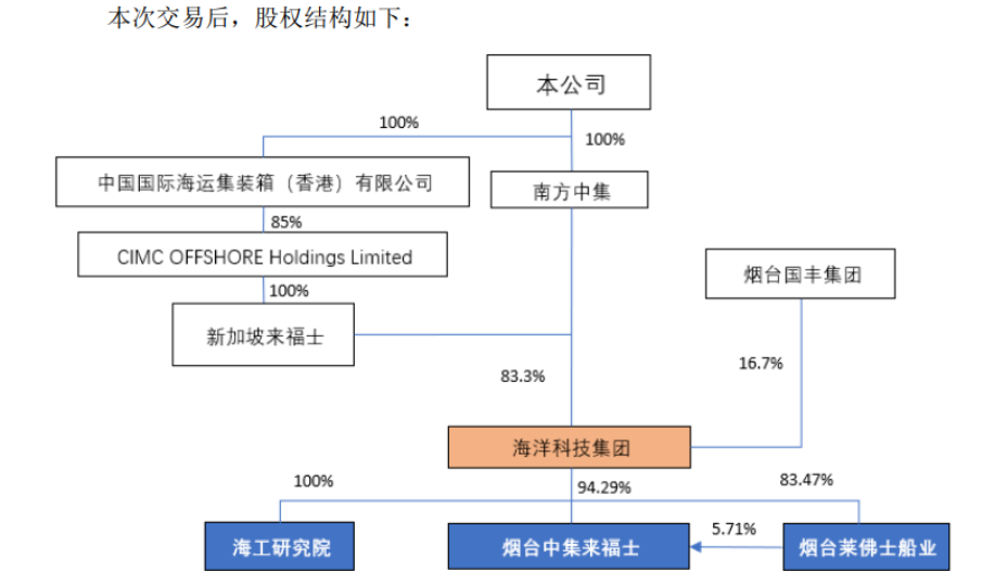 上述交易完成后,海洋科技集团成为中国国际海运集装箱(集团)股份有限公司控股子公司。