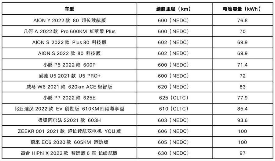 有些朋友可能会问,现在不是有一些1000km+的车型出现吗?