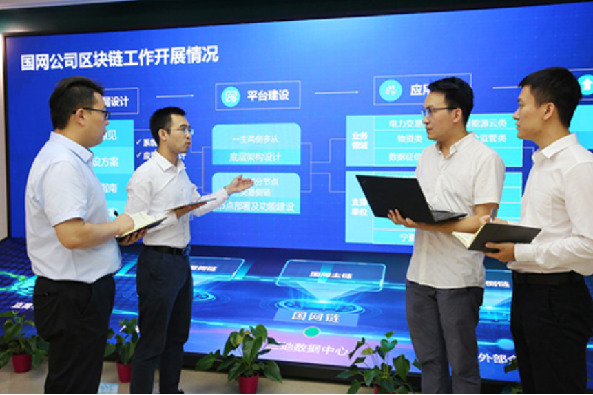 ▲国网数科控股公司工作人员开展国网链深化应用研讨