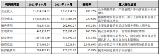 2022年前三季度,欣旺达实现营业总收入365.84亿元,同比增长43.00%;归母净利润6.88亿元,同比增长2.72%;扣非净利润4.84亿元,同比增长7.21%。