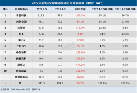 从2022年前九个月全球电动车动力电池装机量可以看到,中日韩已形成三足鼎立的局面,且目前行业集中度非常高,宁德时代以35%的市场份额,已成为行业绝对龙头,欣旺达尽管在前十制造商中同比增幅最高,但仍与头部企业有较大差距。且头部企业有一定的规模优势,随着宁德时代、比亚迪等企业研发投入的增加,行业更新换代还会加速,欣旺达等行业追赶者或将面临更大的压力。
