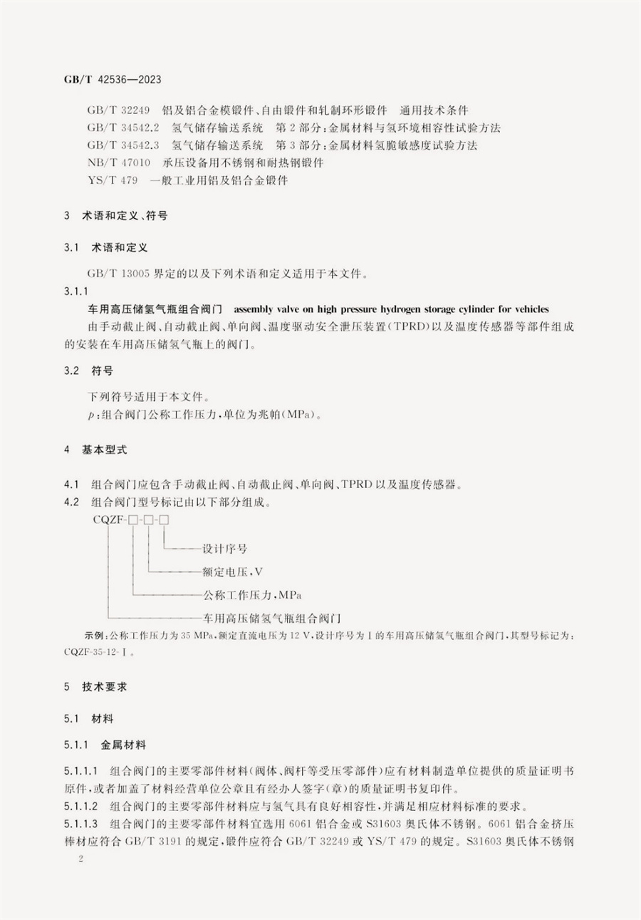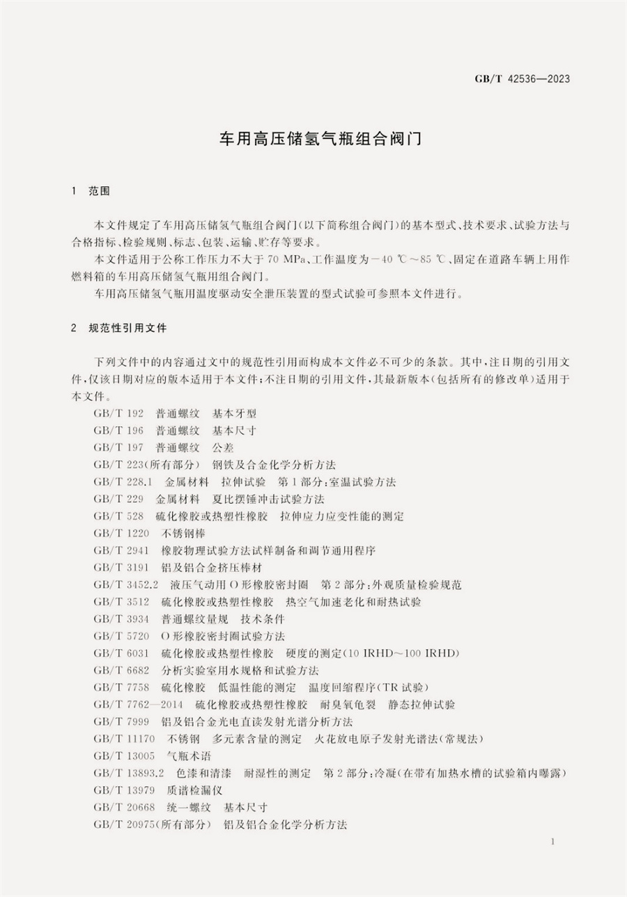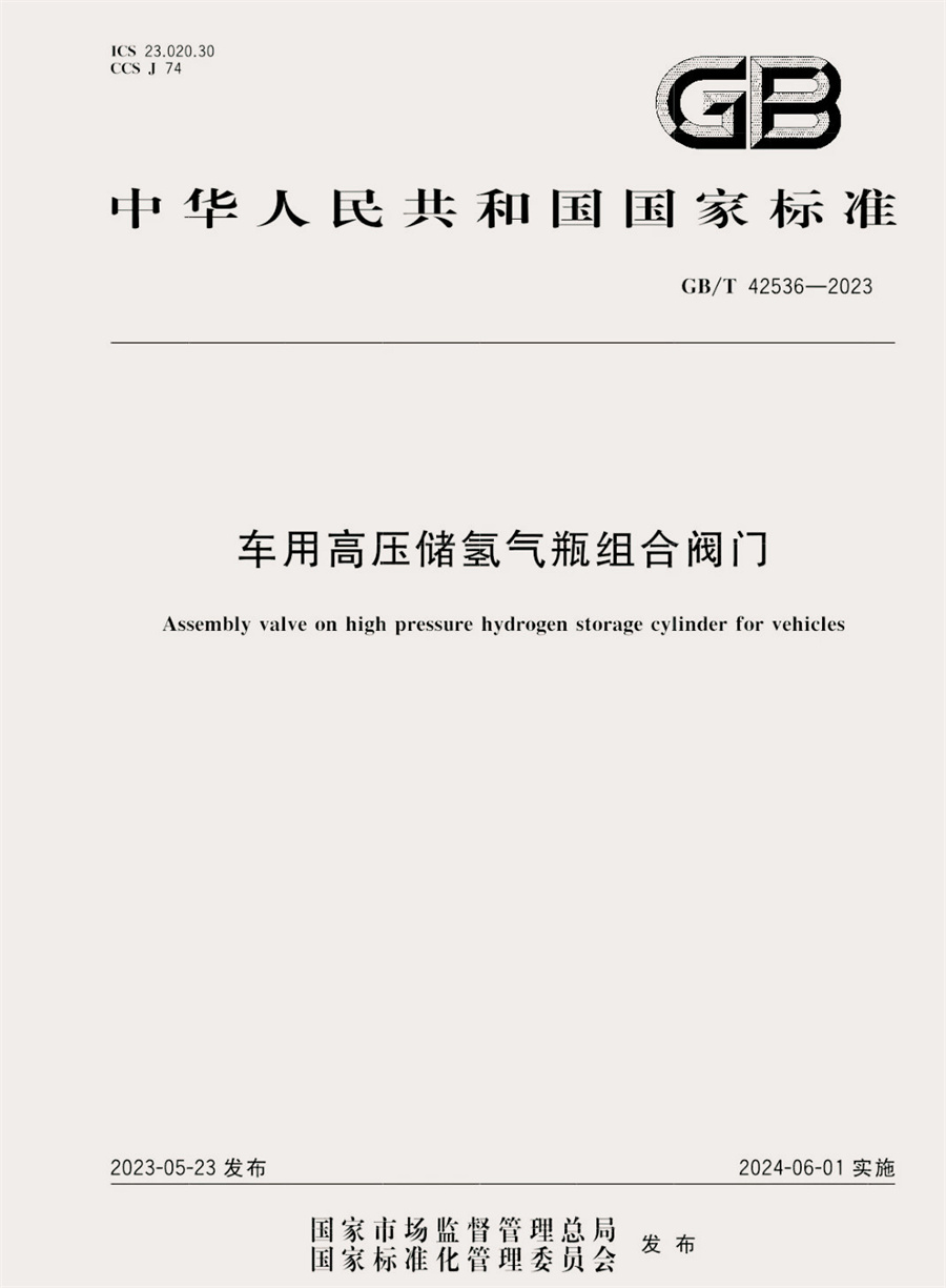 华夏能源网(公众号hxny3060)获悉,近日,由TC31(全国气瓶标准化技术委员会)归口,TC31SC8(全国气瓶标准化技术委员会车用高压燃料气瓶分会)执行的国家标准《车用高压储氢气瓶组合阀门》(GB/T42536-2023)发布。日前,该标准全文正式公布。