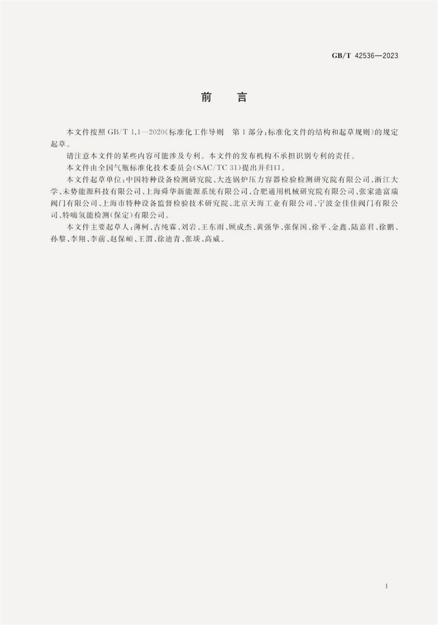 《车用高压储氢气瓶组合阀门》主要起草单位包括中国特种设备检测研究院、大连锅炉压力容器检验检测研究院有限公司、浙江大学、未势能源科技有限公司、上海舜华新能源系统有限公司、合肥通用机械研究院有限公司、张家港富瑞阀门有限公司、上海市特种设备监督检验技术研究院、北京天海工业有限公司、宁波金佳佳阀门有限公司、特嗨氢能检测(保定)有限公司。