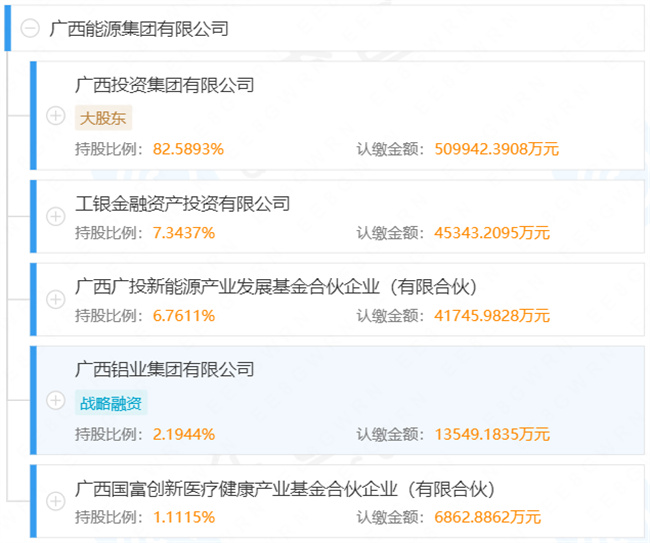 2023年6月2日,广西能源集团有限公司成立,在广西广投能源集团的基础上改革更名成立,是广西投资集团有限公司专业化从事能源产业投资、建设、运营、管理的二级平台公司。按照构建清洁低碳、安全高效现代能源体系要求,打造形成以水电、火电、核电、电网、天然气等能源为基础,海上风电、陆上风电、光伏发电、储能、氢能等新能源为重点的多元化大能源产业格局。