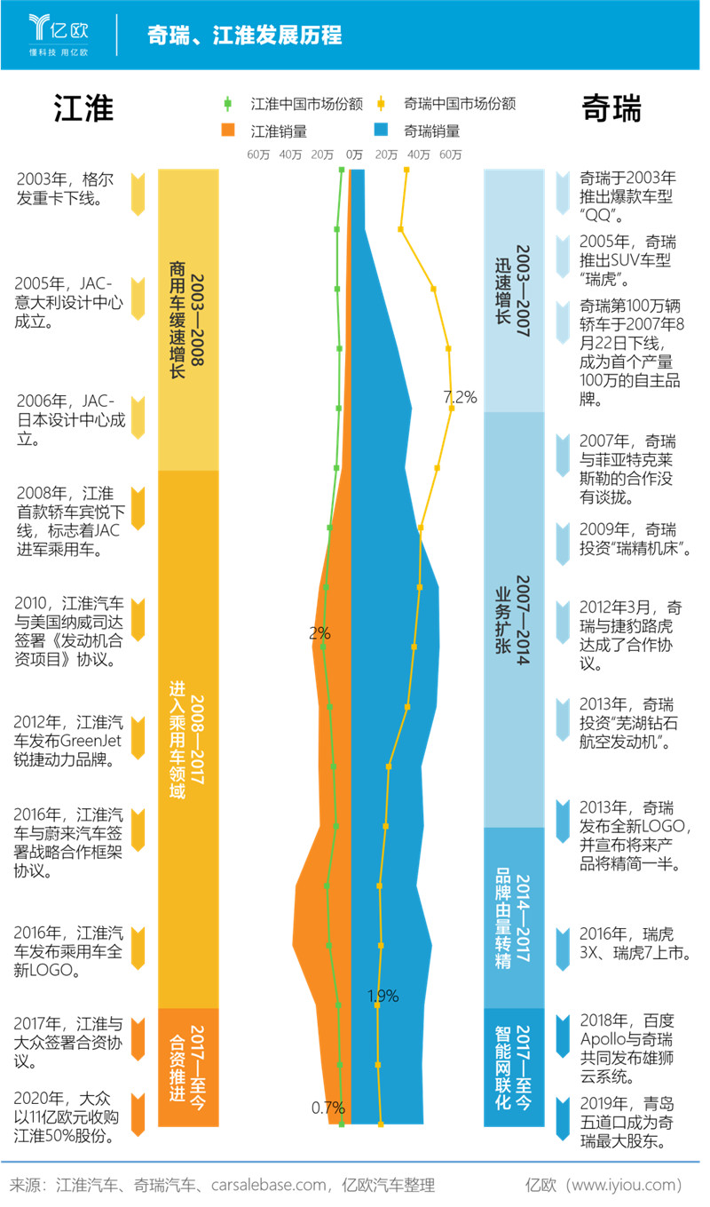 2016年起,江淮先后和蔚来、大众达成了合作关系:帮助蔚来代工,与大众成立合资品牌。但在一段时间内,蔚来处于自身难保的境地,江淮大众也未迎来拐点。