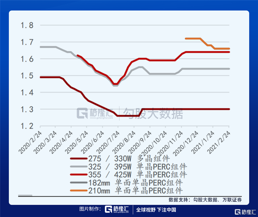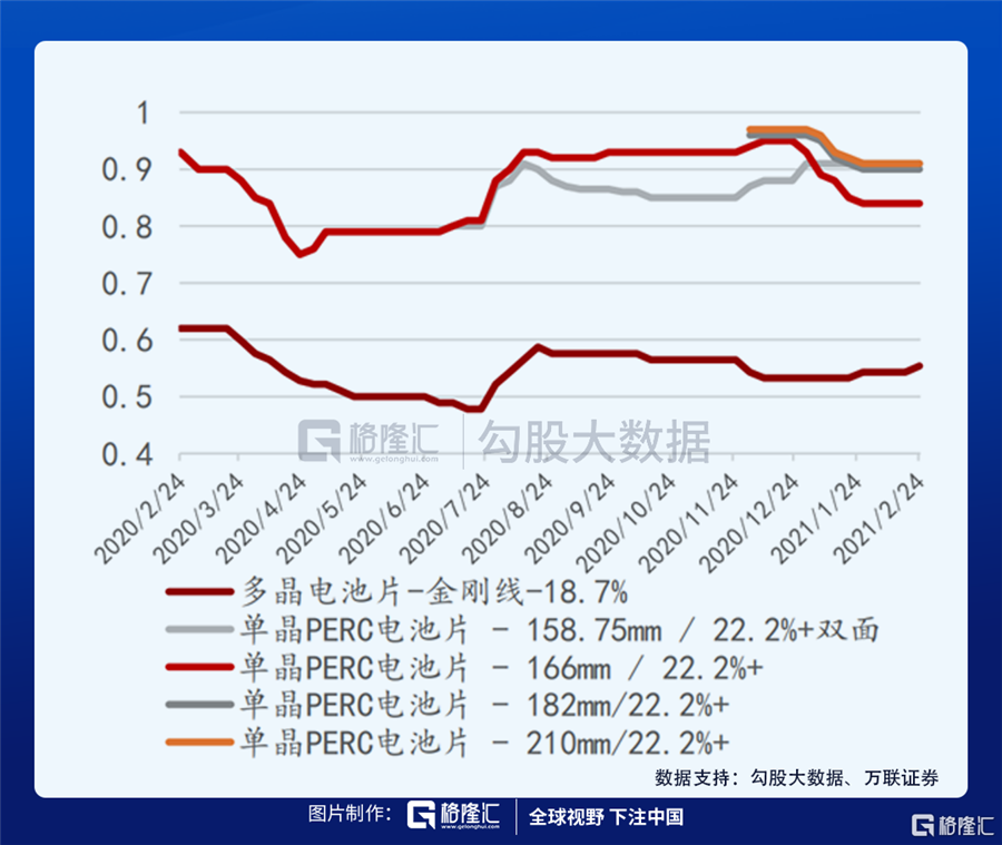 ①硅片:以隆基股份为例,2020年扩产计划就达70GW,且预计在2020年底或在2021年投产;全行业预计2021年产能可达300多GW!可2021年预计光伏新装机只能达到150-170GW,如果产能全部达产后将面临产能过剩。