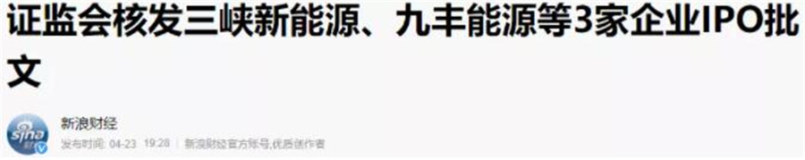 2021年4月23日,证监会按法定程序核准了以下企业的首发申请:中国三峡新能源(集团)股份有限公司,江西九丰能源股份有限公司,天津市依依卫生用品股份有限公司。