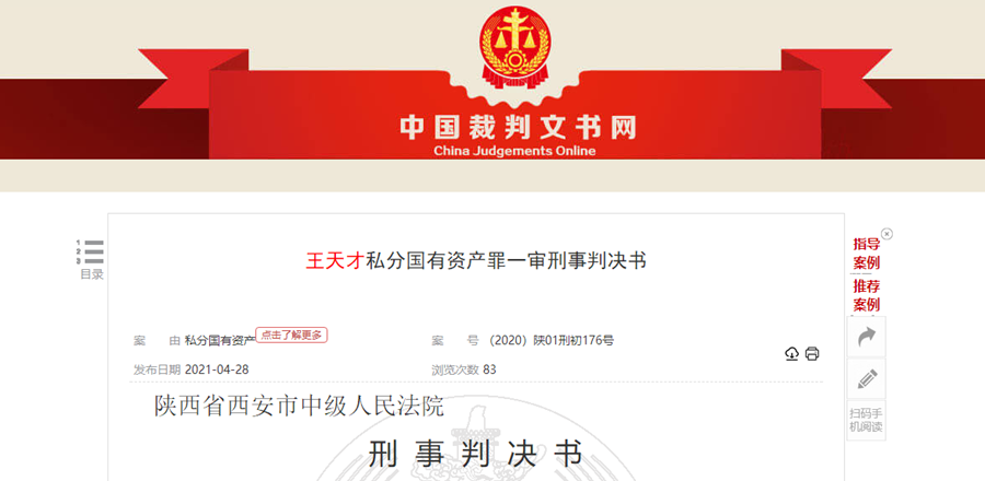 近日,中国裁判文书网公布了国家能源局西北监管局原局长王天才私分国有资产罪一审刑事判决书,王天才数罪并罚决定执行有期徒刑8年又6个月。