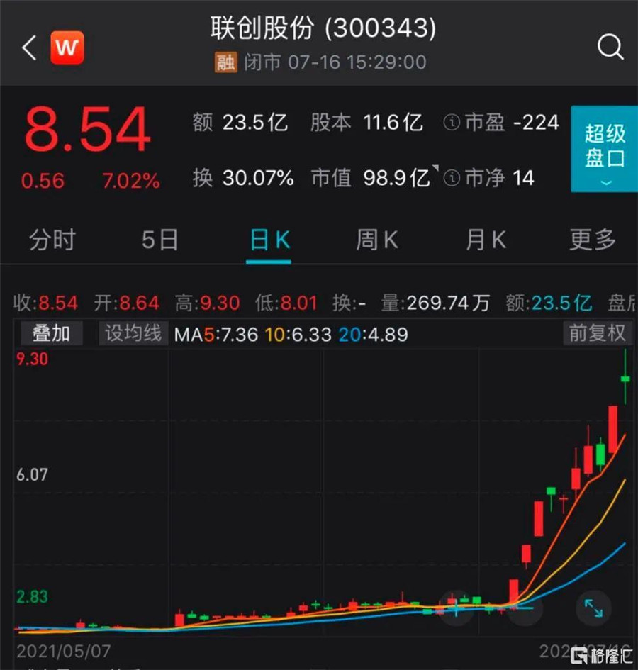 7月2日至15日,联创股份股价累计上涨139.64%。