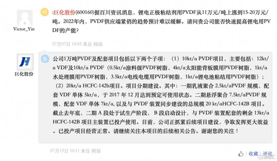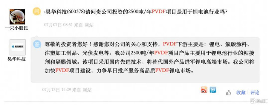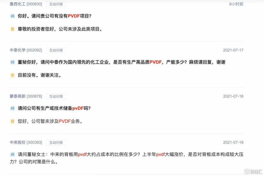 在投资者互动平台,“PVDF”成为热门提问词汇。