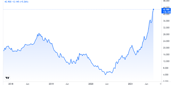 自今年5月以来,天然气价格上涨了逾1000%,也成为了年内涨幅最大的大宗商品。