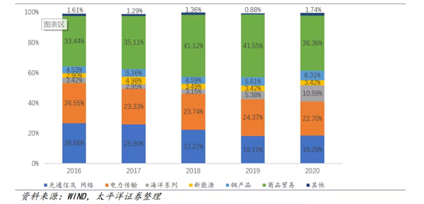 区别于以往对中天科技光缆龙头的固有认知,近年来,公司的多元化经营逐步开花结果,尤其是海洋板块业务利润贡献已经超过50%。