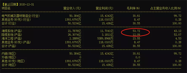 很明显,谁在海缆领域掌握了先进的制造技术和市场份额,那么就会获得超额收益,通过对比海缆和陆缆的毛利率,结论一目了然。