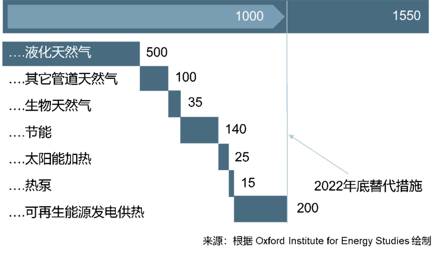 国际能源署的估计要保守得多,预计欧盟到2023年底只能减少进口俄罗斯天然气约一半左右,其中进口液化天然气只能增加300多亿立方米,通过减低室温1摄氏度的节能措施也只能减少进口俄罗斯天然气约100多亿立方米。