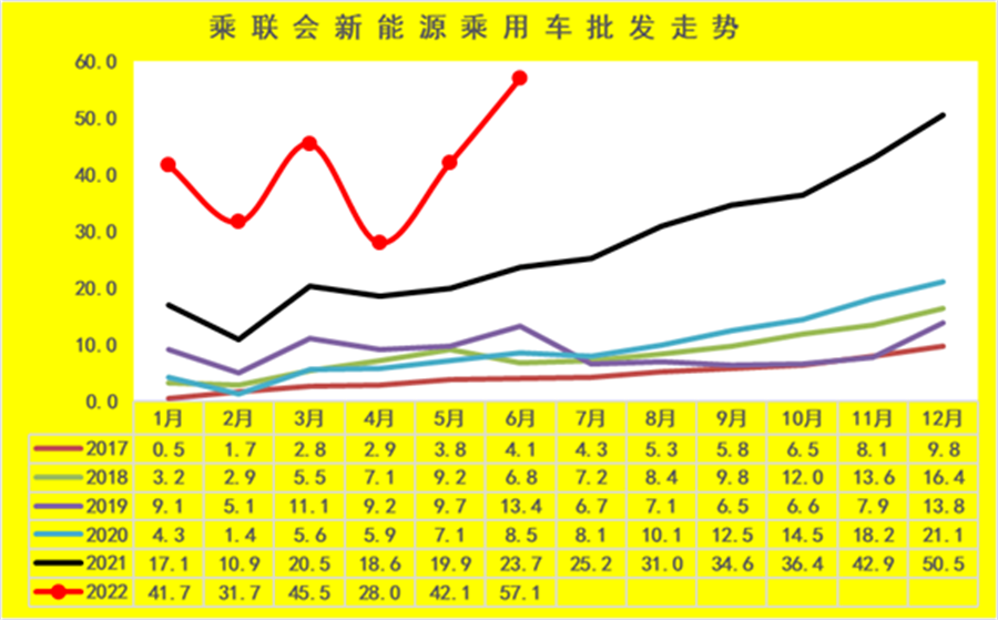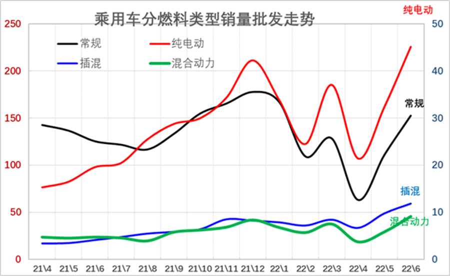 值得一提的是,今年1-6月新能源乘用车批发246万辆,同比增长130%。1-6月新能源乘用车国内零售224万辆,同比增长131%。在燃油车销量整体低迷的情况下,新能源汽车反成“万绿丛中一点红”实现批发、零售的双增长,确实令人刮目相看。