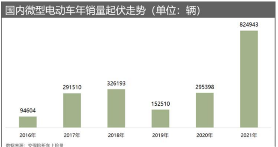 根据交强险新车上险量数据显示,从2020年开始,国内微型纯电动车年销量就呈现非常大的起伏。比如2021年新车上险量达到80余万辆,而今年前5个月,国内微型纯电动车累计销量接近40万辆,并且保持了53%的同比增长。