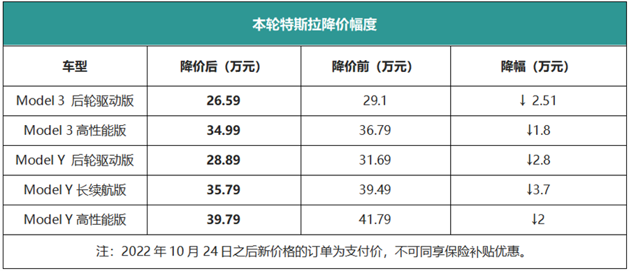 继今年 9 月以保险优惠名义“变相降价”后,10月24日,特斯拉官网上的在售Model Y及Model 3全系车型都出现了售价下调现象,降价幅度在1.4-3.7万元不等。
