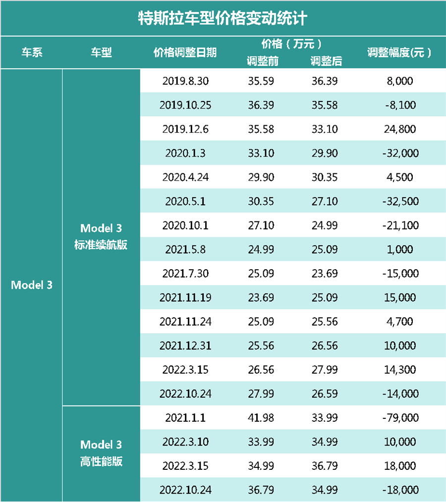 以Model 3为例,其标配裸车的价格从最初的35.59万元降至最新的27.99万元,累计降价幅度已经达到21%。
