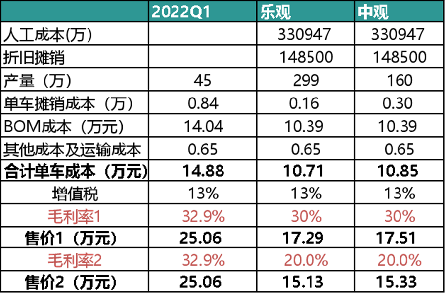 (2)中国员工人数增长20%,也就是18000计算,其他制造和运输成本不变的情况下,(3)中国工厂产能在交付量中占比50%左右(国内产量分别为299万辆与160万辆)的情形计算: