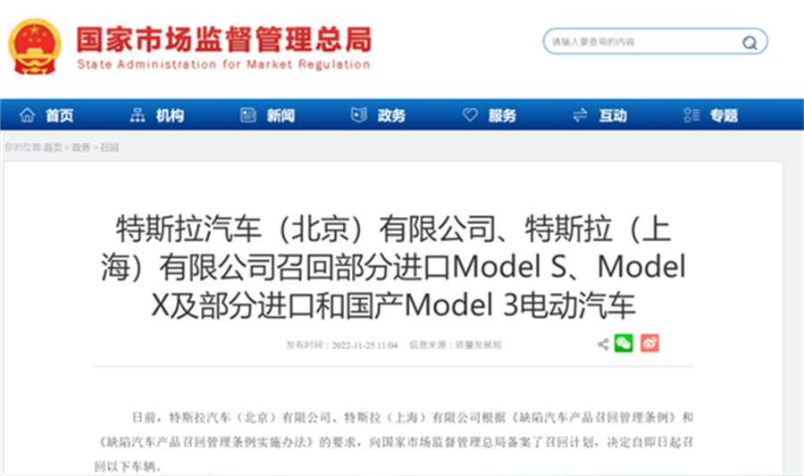 近日,据市场监管总局网站消息称,特斯拉汽车(北京)有限公司、特斯拉(上海)有限公司向国家市场监管总局备案召回计划,决定自即日起召回部分进口ModelS、Model X和部分进口及国产Model3电动汽车,合计召回8.06万辆。