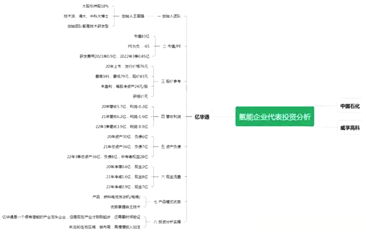 下面再讲一下氢能的产业链及氢能产业链代表企业,氢能从上游的制氢到中游的储运加注,到下游的应用,链条很长,现在每个环节的成本都很高,完全是在靠国家补贴在往推进,大家可以看一下这张产业链图,每一块投入都很大,加氢成本达到30+元/KG,反观风能太阳能发展的初级也是靠着政策的补贴一步步走出来的,上游制氢的代表企业是中国石化,运储加注的代表企业是中材科技,下游应用的代表企业是亿华通(燃料电池中国龙头),老企业转型氢能代表威孚高科(汽车零部件老企业转型氢能)。