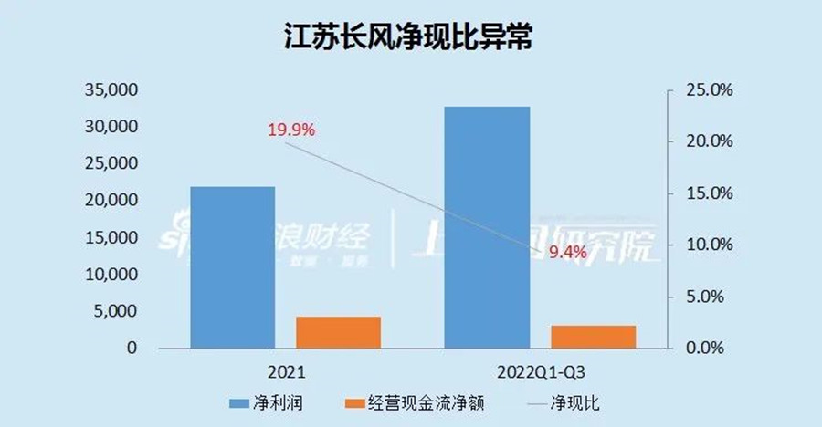 此外,与亮眼业绩形成明显反差的是,公司大幅下降的净现比。数据显示,今年前三季度,江苏长风净利润大幅增加的同时,经营现金流净额却反而下滑,从本已不高的19.9%继续降至仅9.4%。