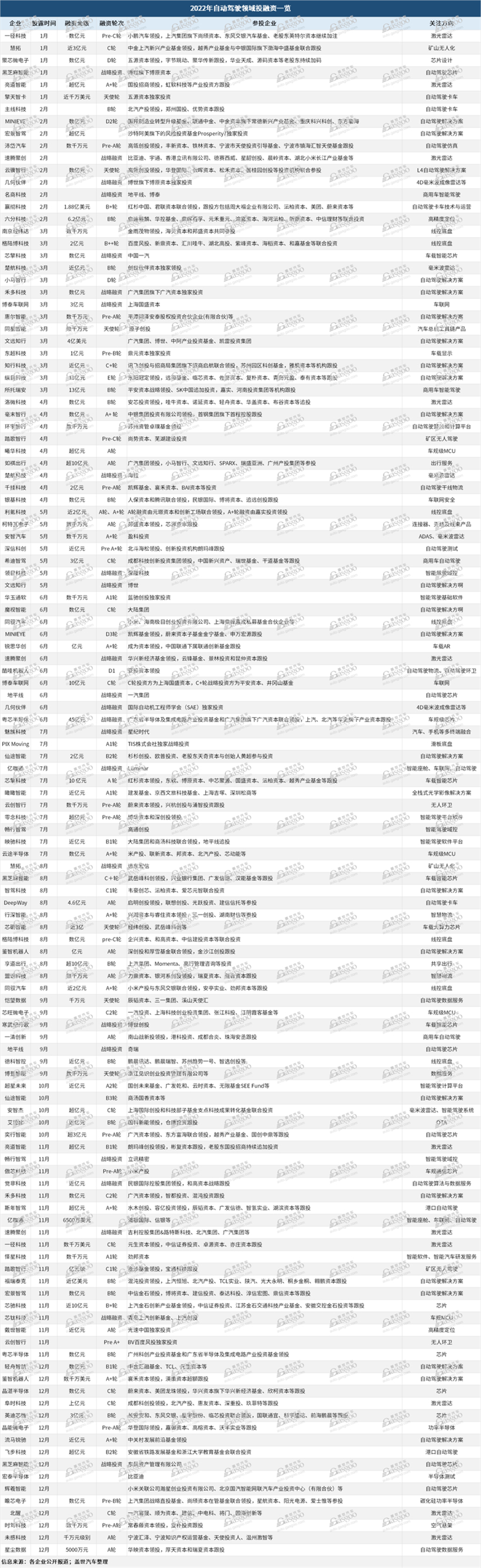基于这一逻辑,从产业端到投资端,关注焦点都在向量产型自动驾驶领域聚集。在刚刚过去的2022年,包括MINIEYE、宏景智驾、禾多科技、智驾科技、纵目科技、毫末智行、魔视智能、知行科技、安智汽车、福瑞泰克等在内的多家量产型ADAS企业,均拿到了新的投资,其中前三家企业2022年分别披露了两起融资。