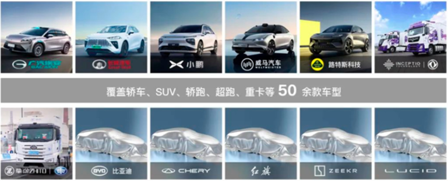 速腾聚创围绕第二代智能固态激光雷达RS-LiDAR-M1,先后揽获了比亚迪、广汽埃安、一汽红旗、奇瑞汽、长城、小鹏汽车、极氪等全球10+知名车企定点合作,前装量产项目覆盖50多款车型,官方公布的预期订单量超过1000万台。