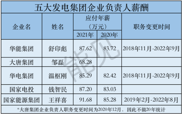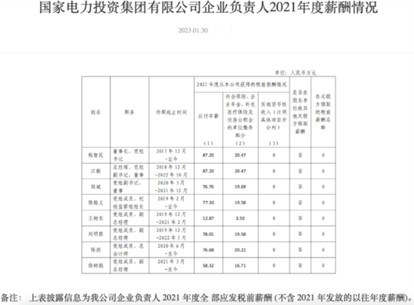 2023年1月31日,五大发电集团2021年度企业负责人薪酬情况披露。