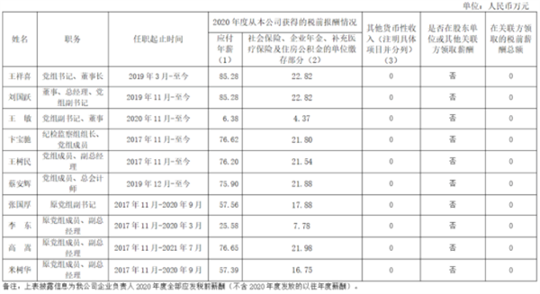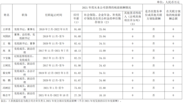 根据披露情况,2021年度应付年薪中薪酬最高是原国家能源集团党组书记、董事长王祥喜,达到91.68万元。