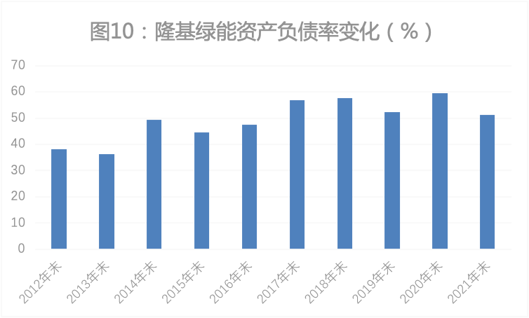 和同行保持较高的资产负债率运营相比,隆基绿能实施稳健的财务管理模式,其资产负债率多年保持在50%上下(图10)。