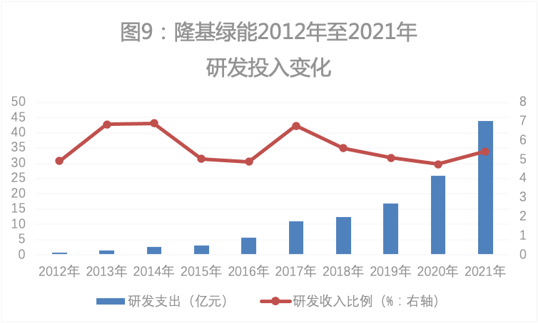 隆基绿能在光伏行业中市值位列第一,组件出货量三连冠,毛利率领先同行,和其高强度的研发投入息息相关。
