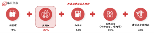 在储运之后,加氢站是氢触达终端应用的最后一环,目前我国加氢站在设备层面的全面国产化替代是降本关键,也是快速铺设加氢站网络的先决条件。纵观加氢站的成本项,大部分核心装置已基本实现国产化,但氢气压缩系统进口依赖程度高,是短期的发展方向之一。