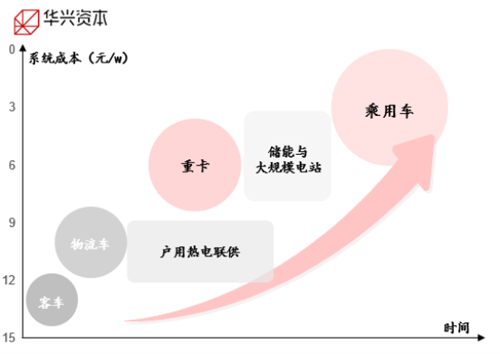 3.用氢环节:以交通领域的燃料电池车发展为先导,重点关注燃料电池技术迭代和零部件全面国产化替代