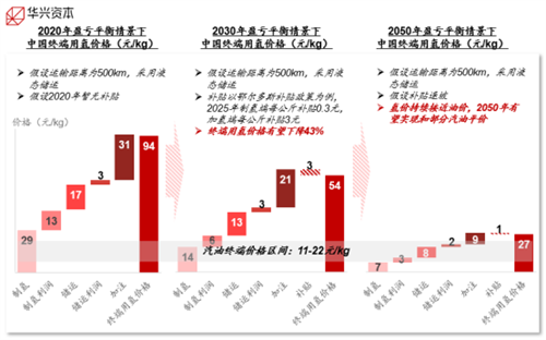 最后,结合制氢、储运、加氢、用氢几大环节的降本预期,我们也测算了我国终端用氢价格的下降趋势。在加氢站盈亏平衡的前提下,我国终端用氢价格有机会和汽油持平,如果就近消纳、减少储运成本,则平价的拐点会更早到来。氢价格下降的同时中国加氢站数量也将高速增长,到2030年将突破千余座,进一步推动用氢需求爆发。