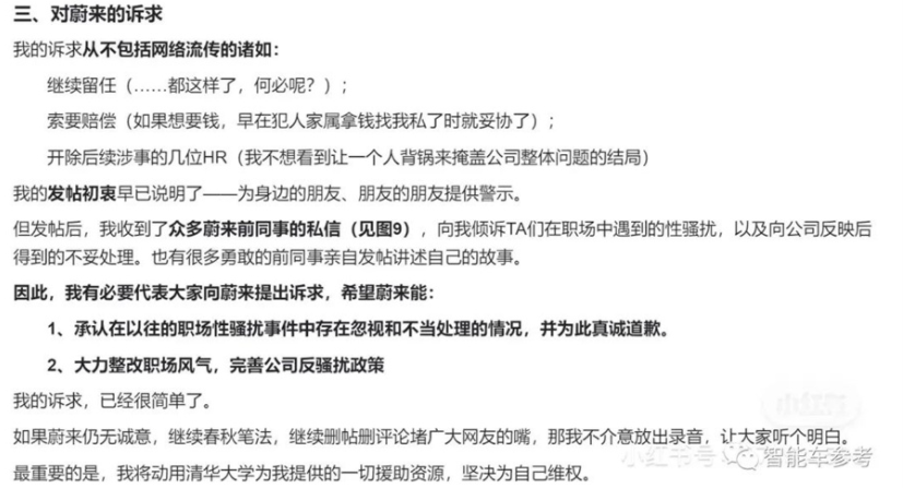 当事人当时表示,她对蔚来的诉求只有以下两点: