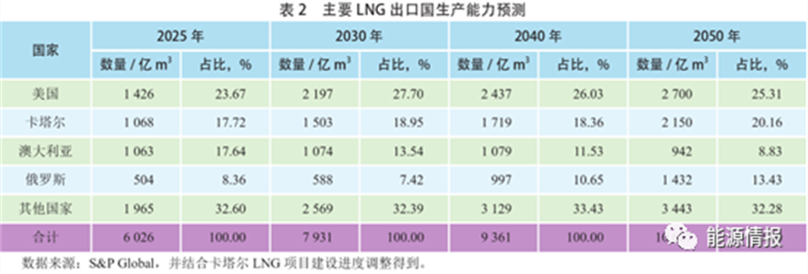 卡塔尔以及澳大利亚、美国、俄罗斯是全球LNG的主要出口国家。2021年,卡塔尔出口LNG1068亿m3,是仅次于澳大利亚(1081亿m3)的世界第二大LNG出口国。2021年卡塔尔超过70%的LNG出口至亚太地区,出口至韩国、印度、中国和日本的LNG均超过100亿m3。若北部气田扩能增值项目顺利推进,预计到2030年卡塔尔LNG出口能力将增加3200万t/a(约435亿m3/a),到2035年再增加1600万t/a(约218亿m3/a),生产能力稳步提升,是未来全球LNG供给能力增长的重要拉动力量之一(见表2)。