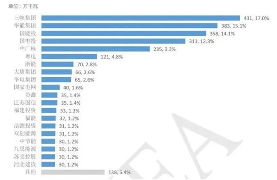 根据CWEA数据,截至2021年底,中国海上风电开发企业累计装机上,排名靠前开发商包括三峡集团、华能集团、国家能源集团、国家电投、中广核、粤电等。