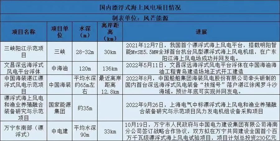 注:2023年5月20日,我国首座深远海浮式风电平台“海油观澜号”成功并入文昌油田群电网,正式为海上油气田输送绿电。